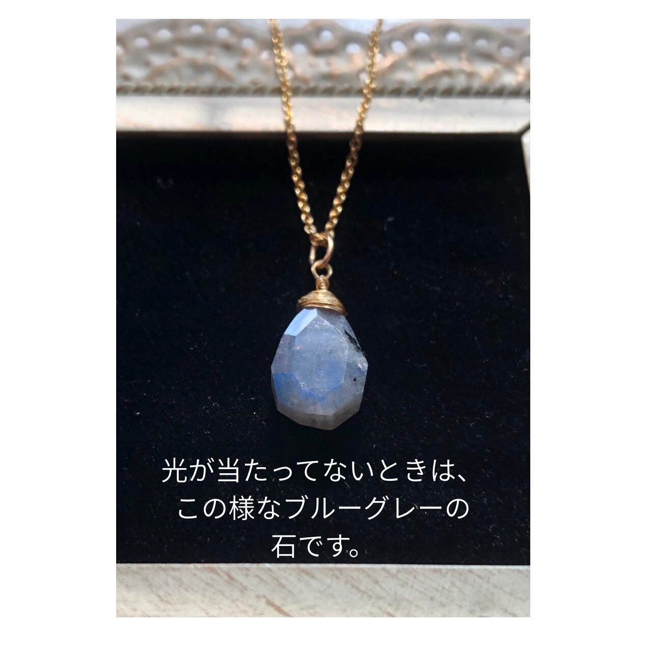 ラブラドライトで作った天然石ネックレスです。