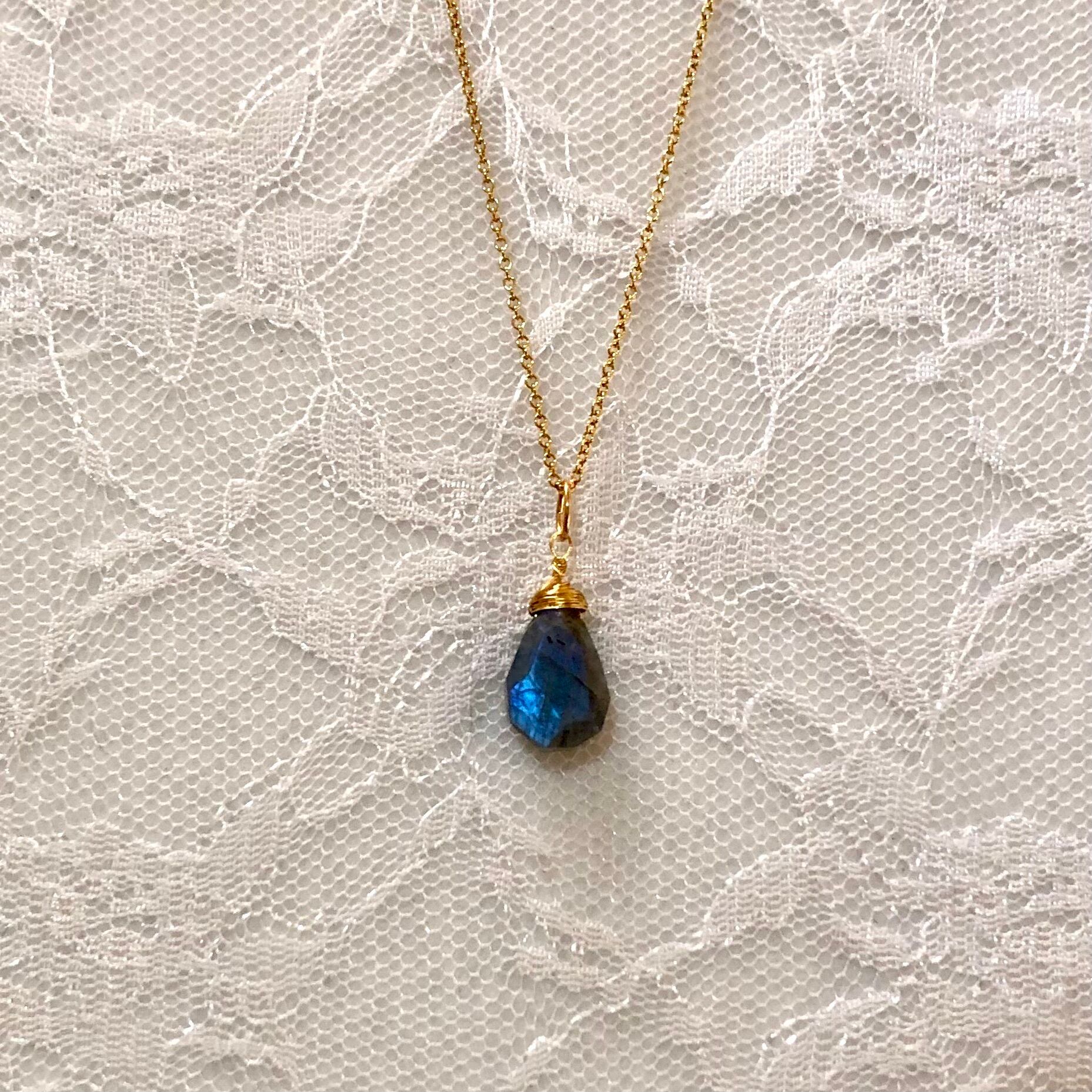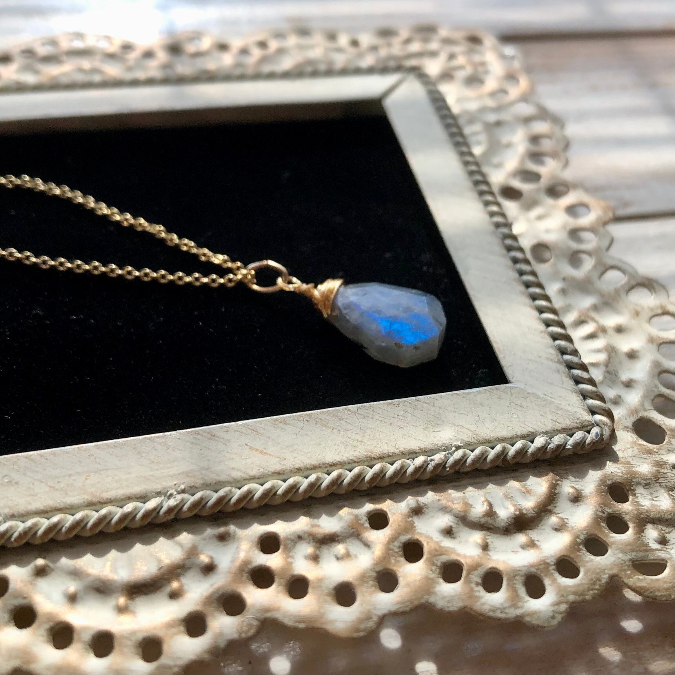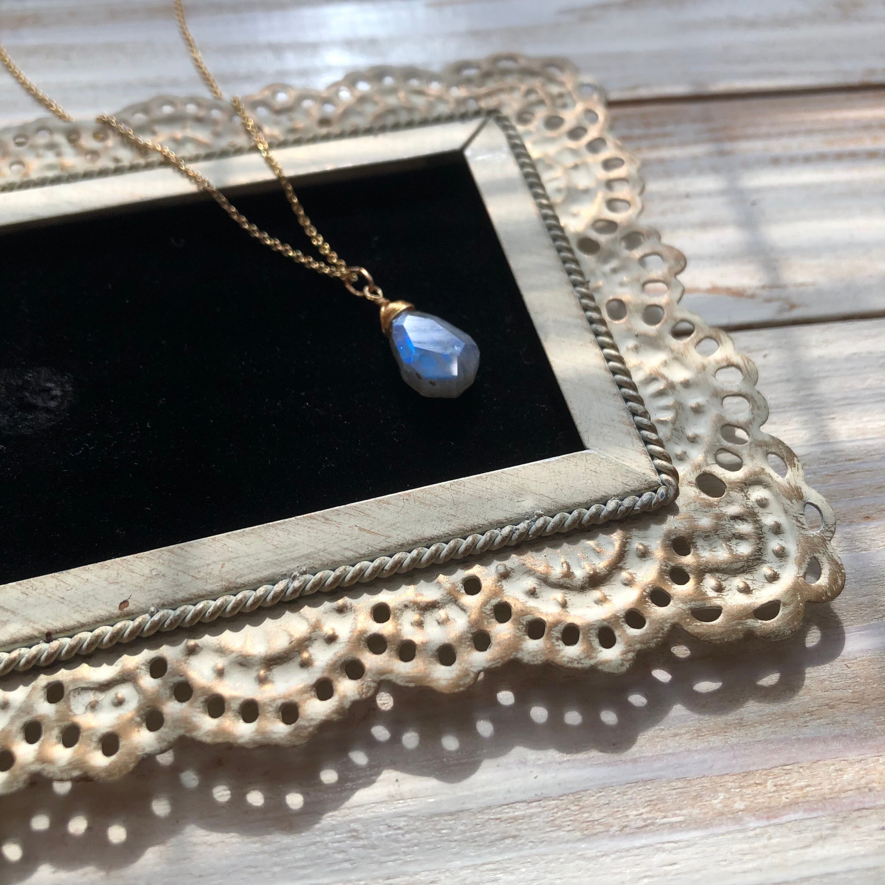 ラブラドライトのネックレス 14kgfチェーン 天然石ワイヤー