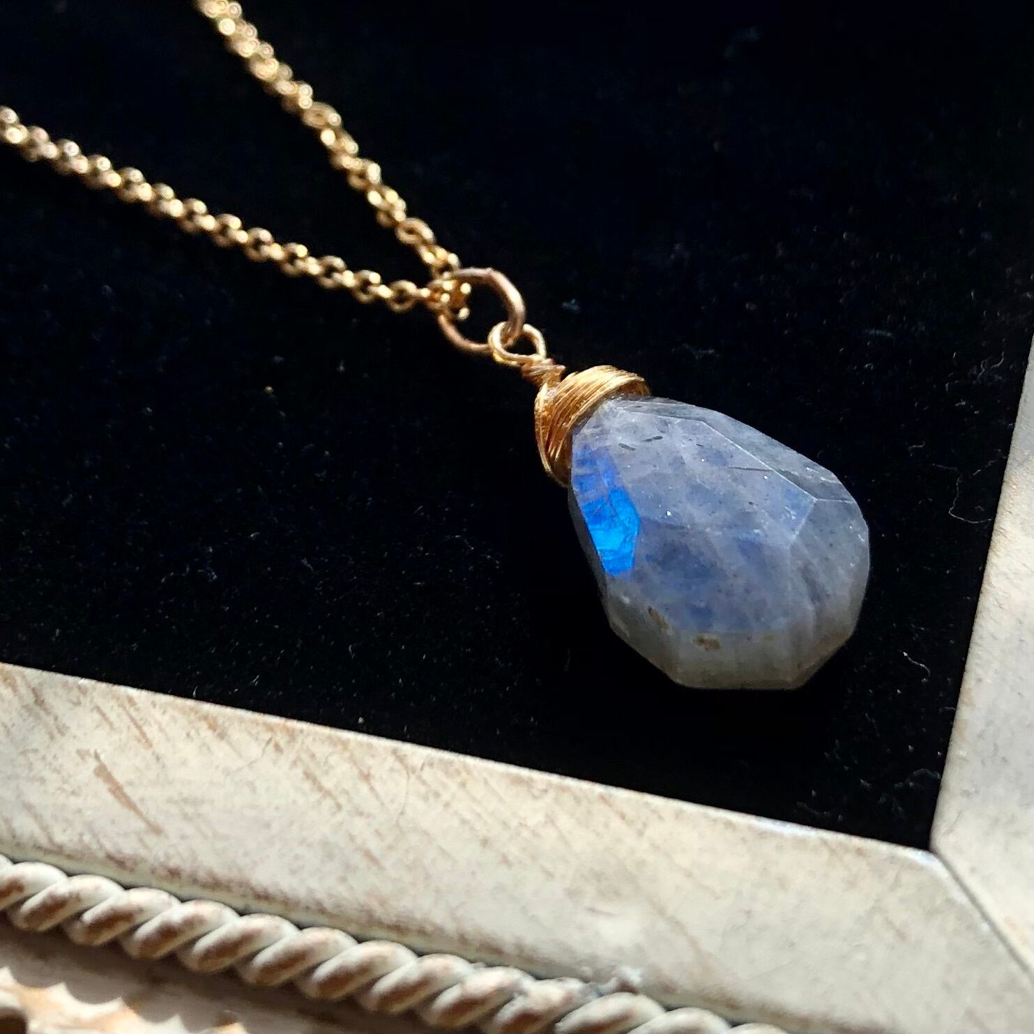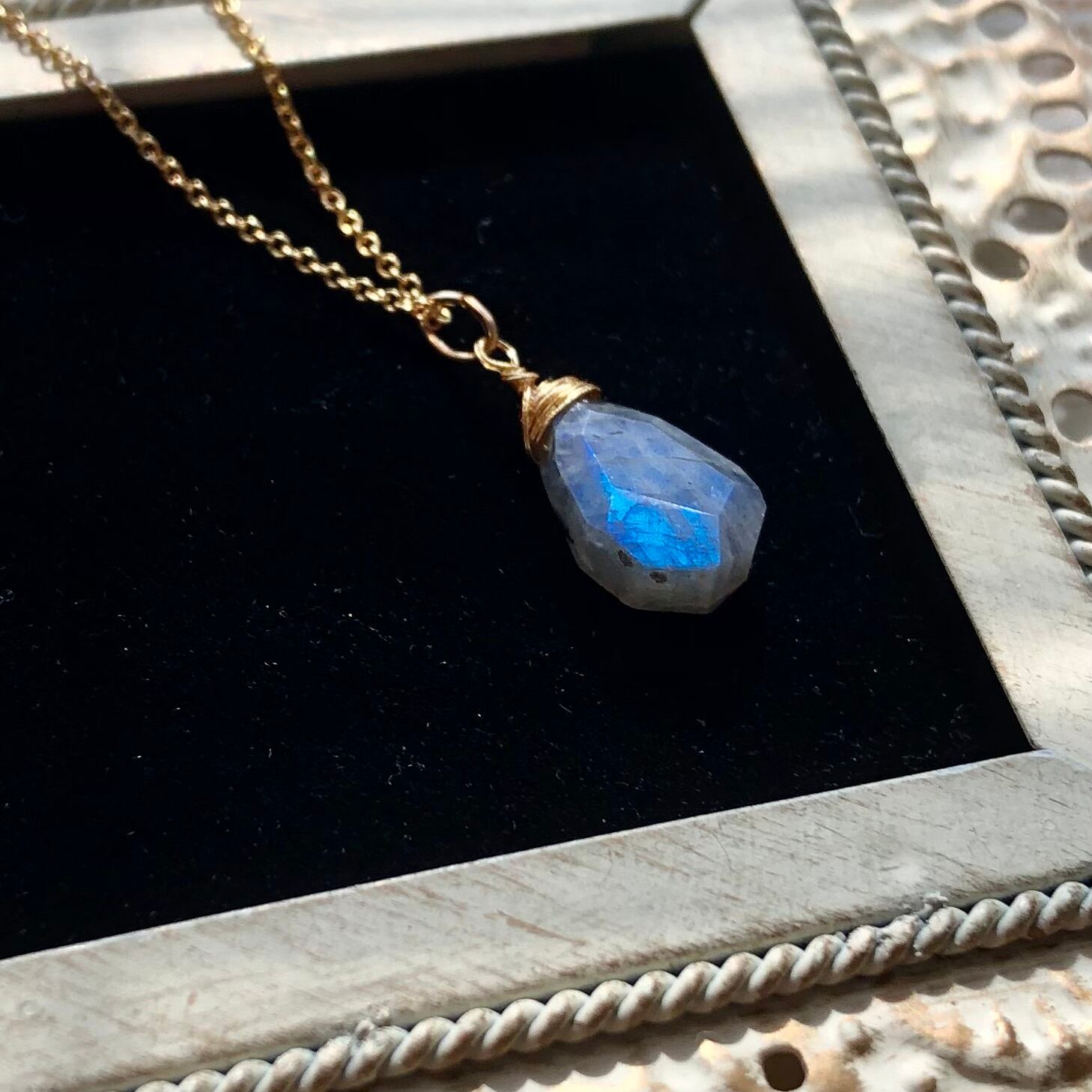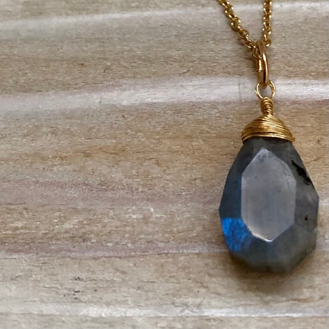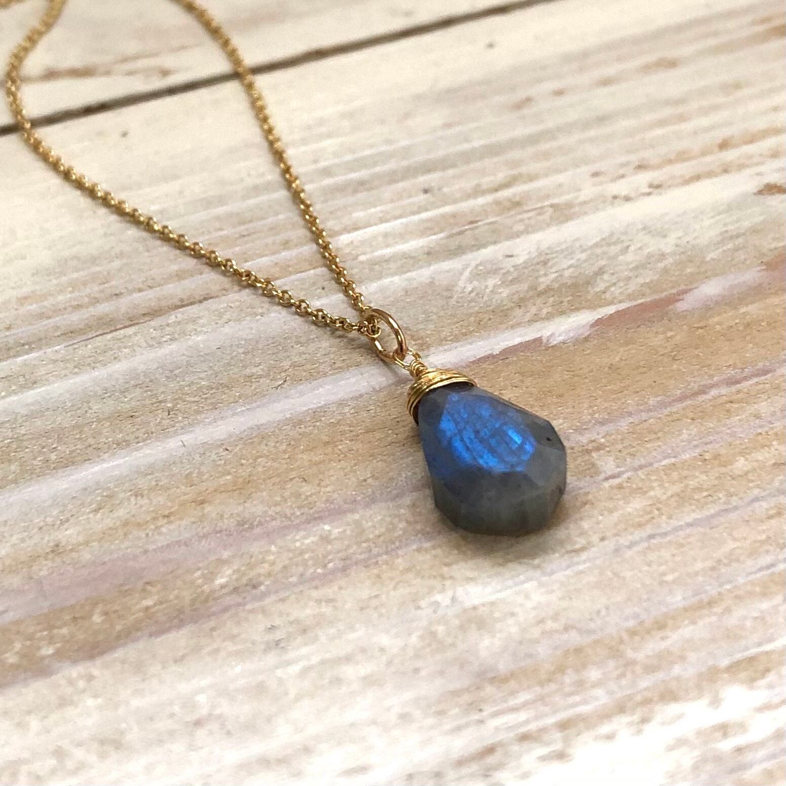 ラブラドライトのネックレス 14kgfチェーン 天然石ワイヤー