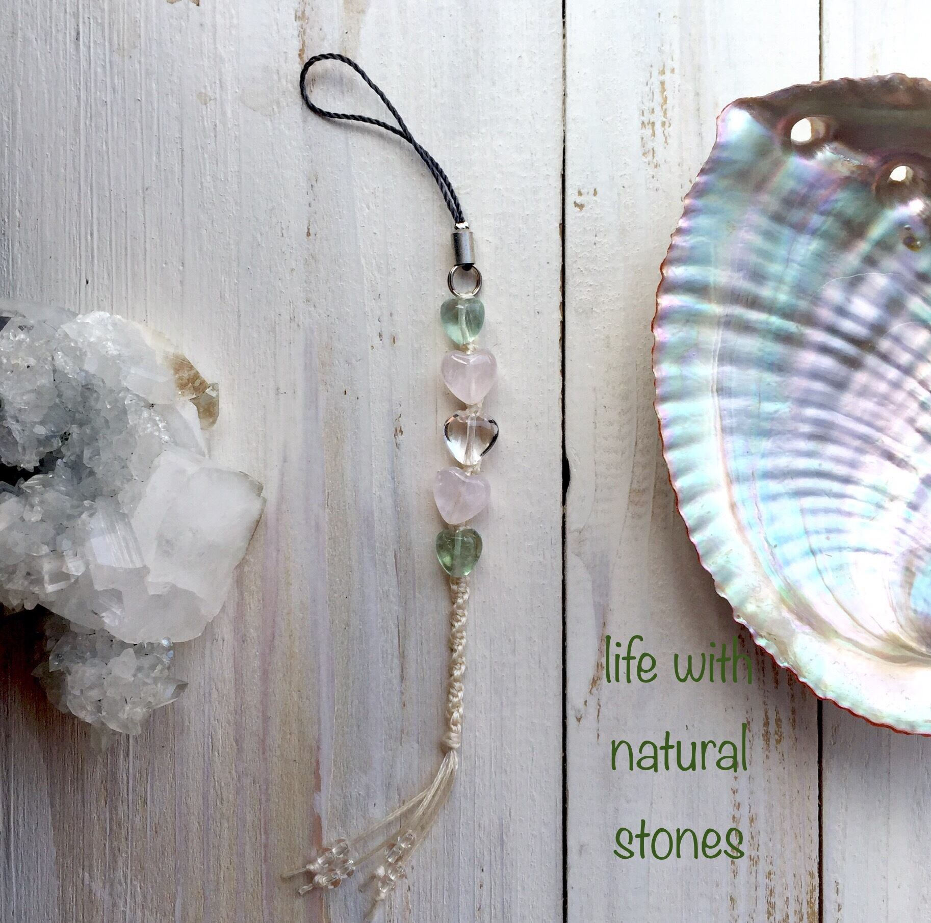 天然石ストラップ ほたる石 ローズクォーツ 水晶 まくらめ