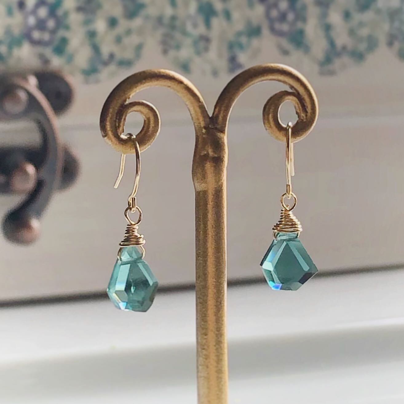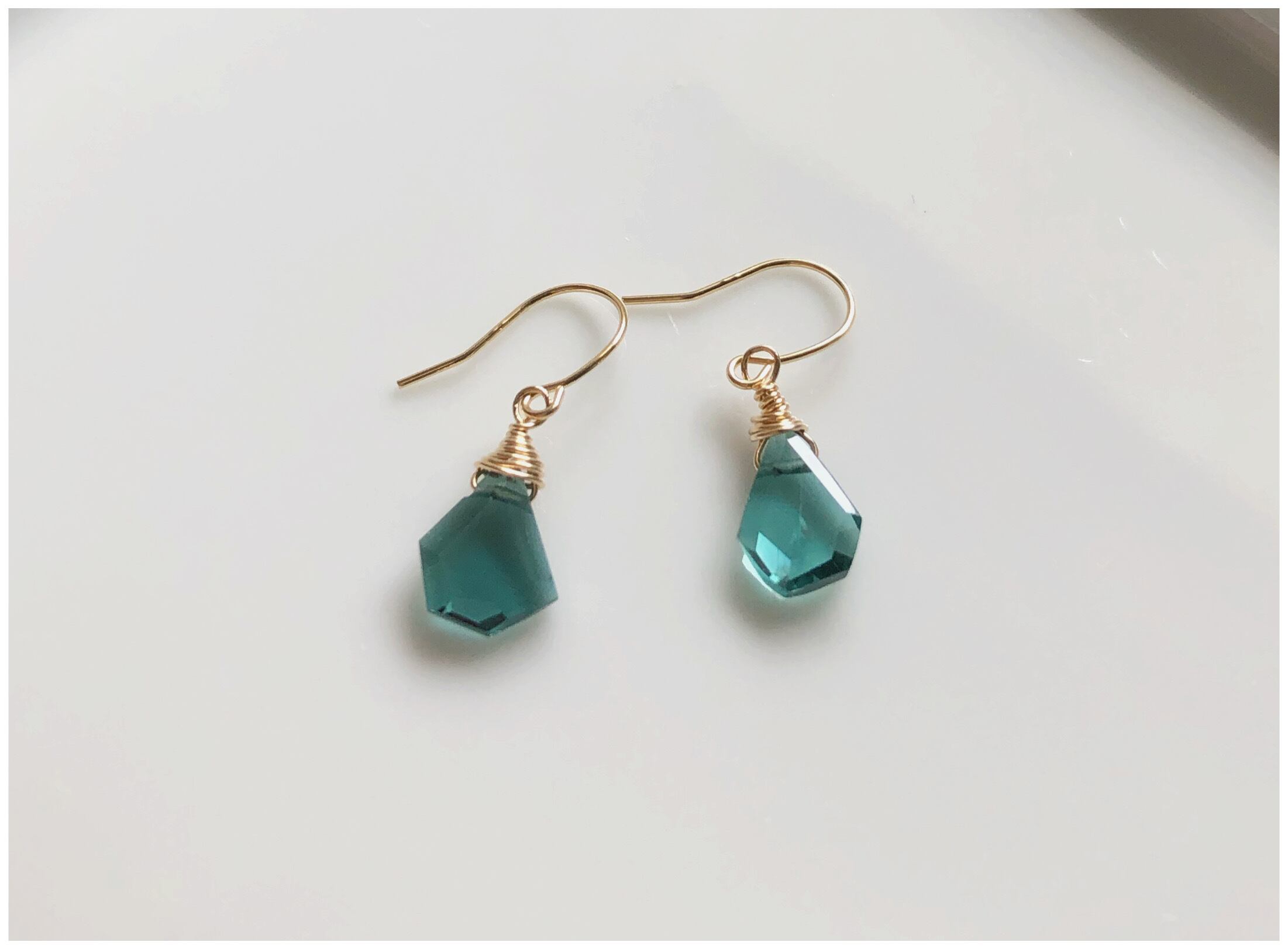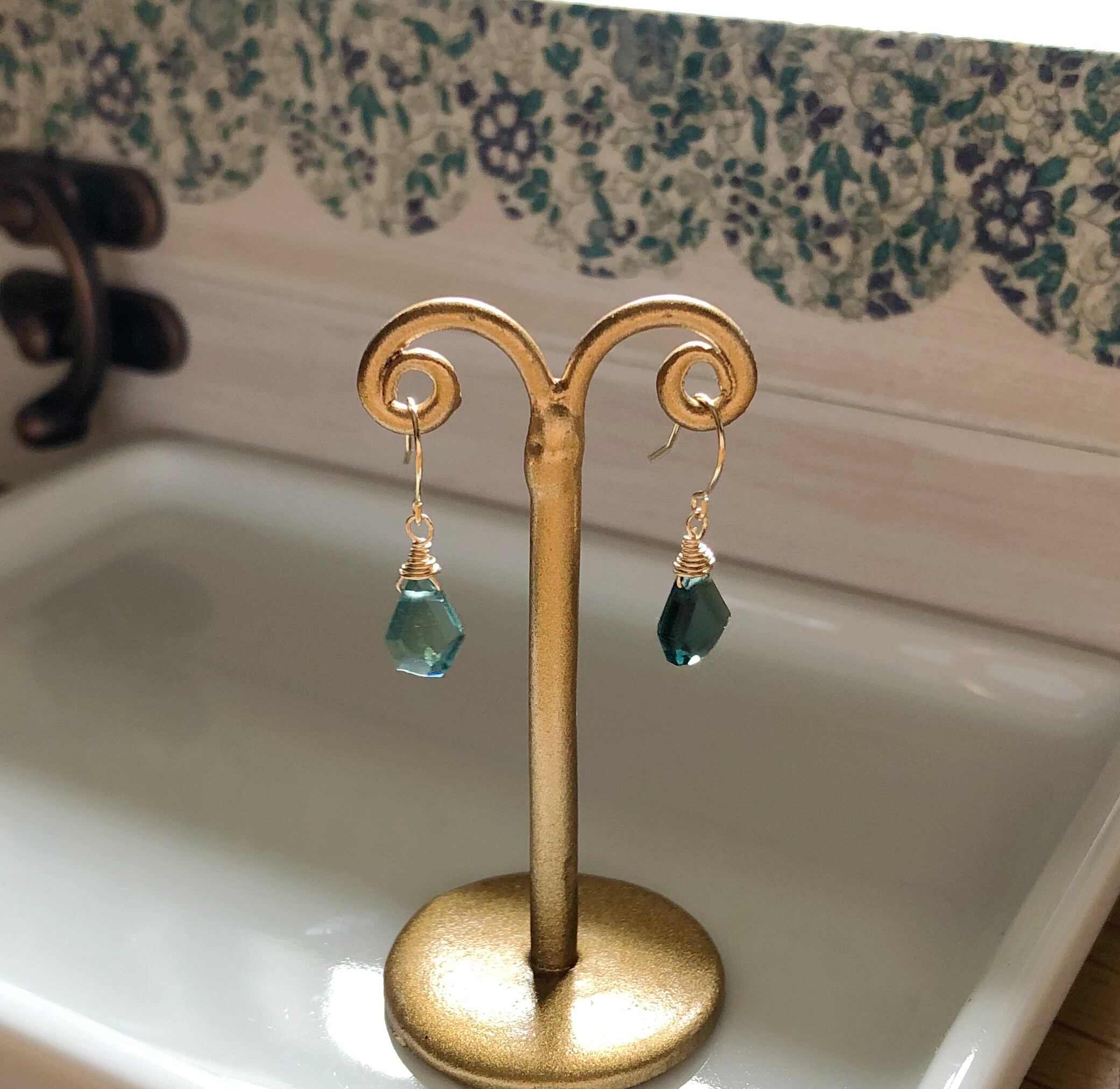 トルマリンの中でも希少な青いトルマリンと18kフックを使ったシンプルなピアス。